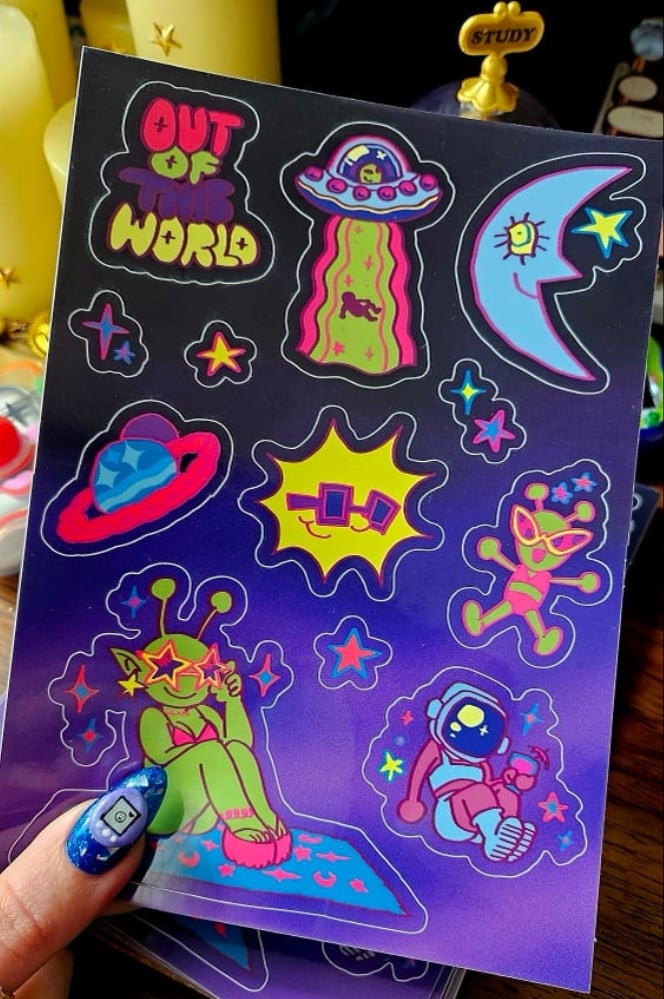 a 5x7 sticker sheet printed on high quality glossy vinyl! 👽✨
